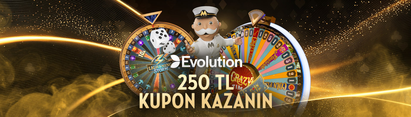 Evolution’un Canlı Casino’daki canlı stüdyo oyunlarında, her gün 250 TL nakit değerinde Kupon kazanın!